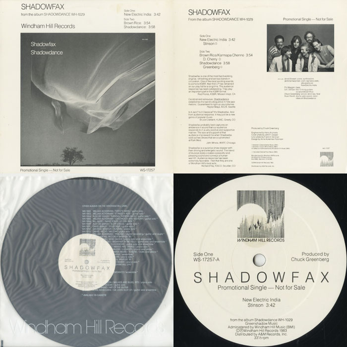 BALEARIC〜ORIENTAL JAZZ !! 東洋音楽とエレクトリックな音色が混ざり合って不思議な感覚に落とし込まれるエスニック・ジャズ・ファンク " New Electric India "、" Shadowdance " に、Don Cherry の名曲をカヴァーした " Brown Rice/Karmapa Chenno " の奥深い神秘的な 3トラックを収録したプロモ・オンリーの EP です。Windham Hill レーベル特有の透明感溢れる細かな鳴りも更に魅力を増しています。バレアリック好きにオススメ !! *カンパニー・インナースリーヴ付属 *ジャケット EX- *ジャケットの拡大画像はコチラから。 |