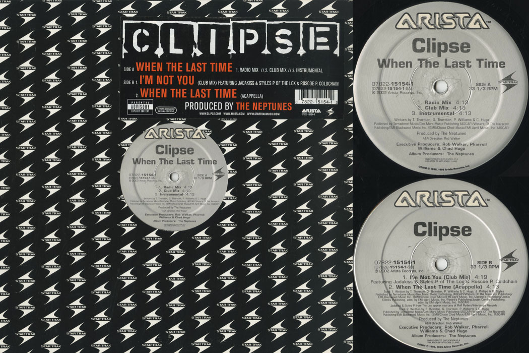 ファレル・ウィリアムズと相棒チャドによる Neptunes が設立したレーベル Stra Trak より、当時とは違った観点で再評価を得る Clipse のファースト・アルバム " Lord Willin' " からのシングル。ウェサイ・ファンクの様相を呈したフューチャリスティック・バウンスがコレまた最高な " When The Last Time "、Jadakiss、Styles P に、Roscoe P との " I'm Not You " をカップリング !! *ジャケットの拡大画像はコチラから。 |